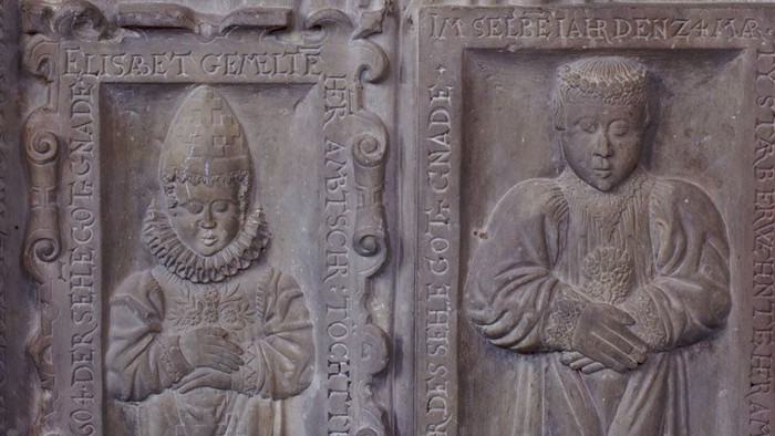 Grabplatte für Elisabet Heinike, und ihre Kinder Elisabet und Andreas, 1604
